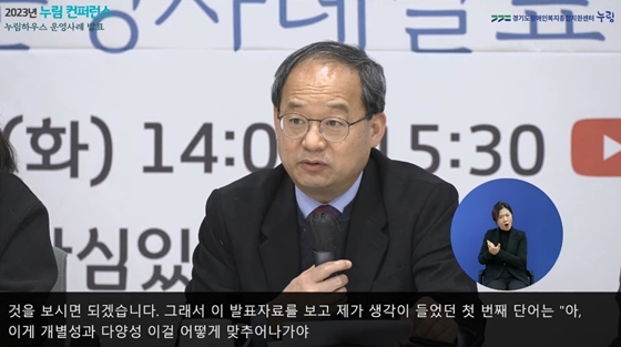 28일 오후 2시 개최된 ‘2023년 제1차 누림 컨퍼런스’에서 토론하는 성공회대학교 김용득 교수. ⓒ경기도장애인복지종합지원센터