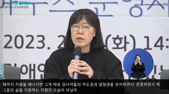 28일 오후 2시 개최된 ‘2023년 제1차 누림 컨퍼런스’에서 토론하는 사회복지법인 한사랑 김정화 사무국장. ⓒ경기도장애인복지종합지원센터