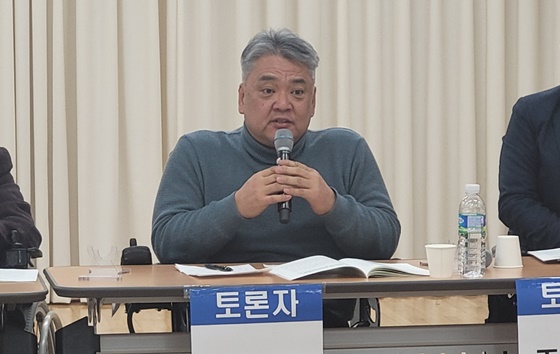 21일 오후 3시 서울 여의도 이룸센터에서 열린 '기초생활수급장애인의 고용 확대를 위한 제도 개선 방안' 토론회에서 토론하는 주식회사 천운 양승혁 대표이사. ©에이블뉴스