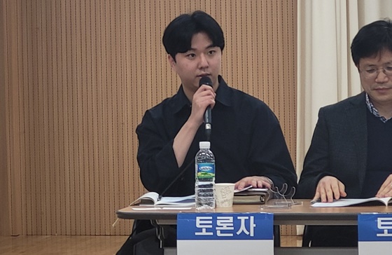 21일 오후 3시 서울 여의도 이룸센터에서 열린 '기초생활수급장애인의 고용 확대를 위한 제도 개선 방안' 토론회에서 토론하는 고용노동부 장애인고용과 지형근 사무관. ©에이블뉴스