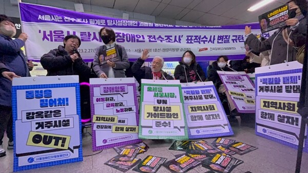 전장연 “심각한 인권침해, UN장애인권리협약 위반”
