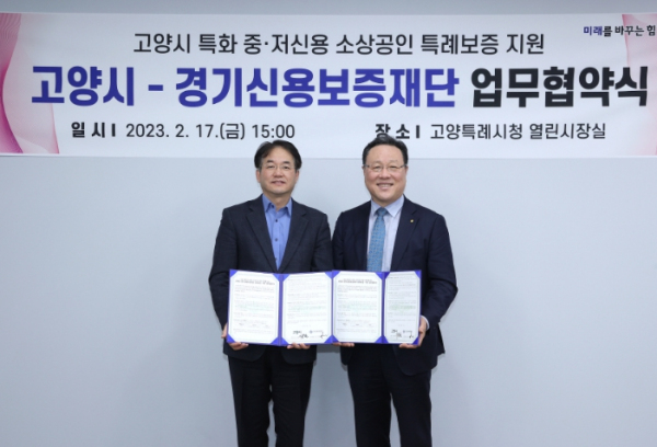 [한국장애인뉴스 김지선 기자] 고양특례시와 경기신용보증재단이 ‘2023년 고양시 중·저신용 소상공인 특례보증’지원을 위한 업무협약을 17일 체결했다.