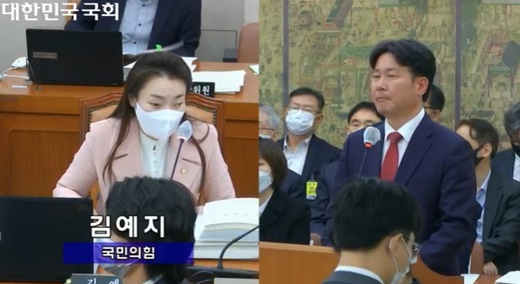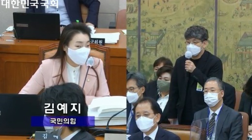 (왼)국민의힘 김예지 의원(오)국립극단 김광보 단장.ⓒ국회방송 에이블포토로 보기▲ (왼)국민의힘 김예지 의원(오)국립극단 김광보 단장.ⓒ국회방송