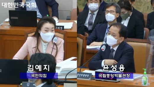 (왼)국민의힘 김예지 의원(오)국립중앙박물관 윤성용 관장.ⓒ국회방송 에이블포토로 보기▲ (왼)국민의힘 김예지 의원(오)국립중앙박물관 윤성용 관장.ⓒ국회방송