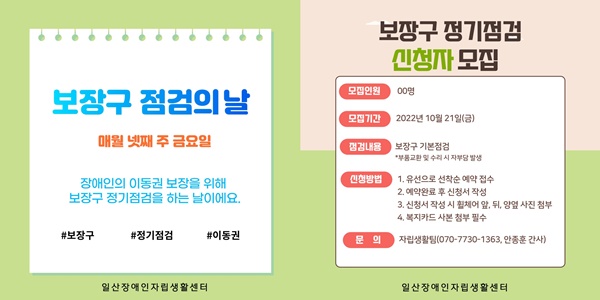 기본점검은 이달 26일을 시작으로, 매월 넷째 주 금요일 오후 2시에 일산장애인자립생활센터 2층 교육장에서 진행된다. 장애인 당사자면 누구나 신청 가능하며, 부품교환 시 본인부담금이 발생할 수 있다.