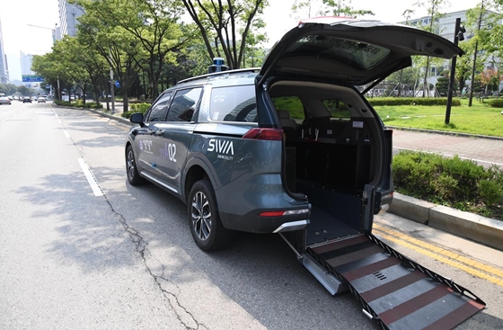 해당 자율차는 휠체어 리프트를 장착한 차량으로, 기존 장애인콜택시 차량과 같은 카니발이다.