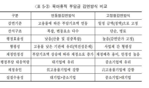 “육아휴직 부담금 감면제도 필요” 연동형·고정형 방향 제시
