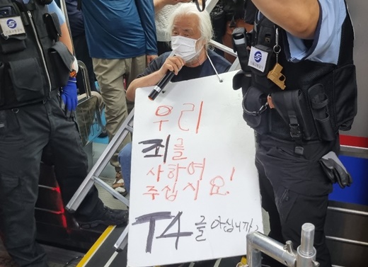 전국장애인차별철폐연대(전장연)가 13일 내년도 장애인권리예산 반영을 촉구하며 ‘제29차 출근길 지하철탑니다’ 투쟁을 재개했다.ⓒ전국장애인차별철폐연대 에이블포토로 보기▲ 전국장애인차별철폐연대(전장연)가 13일 내년도 장애인권리예산 반영을 촉구하며 ‘제29차 출근길 지하철탑니다’ 투쟁을 재개했다.ⓒ전국장애인차별철폐연대