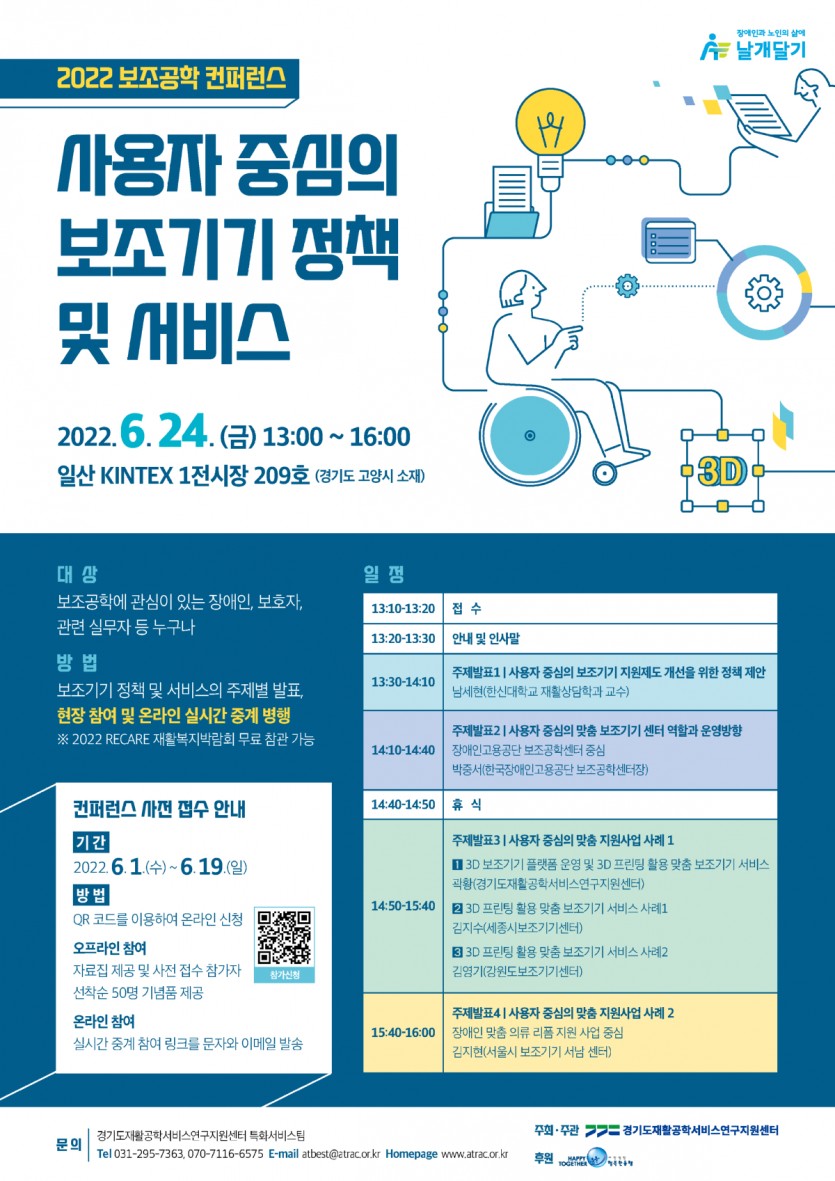 한편 컨퍼런스와 함께 진행되는 ‘2022 RECARE 재활복지박람회’에서 3D 프린터를 이용한 다양한 보조기기와 안구마우스, 인식개선용 교구재를 체험 할 수 있는 전시 부스도 함께 운영한다.