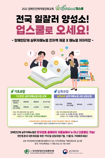 이달 발간되는 ‘2022 장애인단체 실무자매뉴얼’ 최신개정판이 교재로 사용되며, 각 분야별로 오랜 실무경험과 전문자격을 보유한 매뉴얼 집필진이 직접 강사로 나선다.