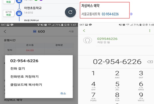 휠체어 사용인이 버스 탑승 전, 정류소에서 버스 운수회사에 직접 전화 걸어, 탑승을 희망하는 버스를 미리 예약하는 저상버스 전화 예약제를 서울시에서 마련한단다. 이 예약제를 이용하는 방법은 다음과 같다.