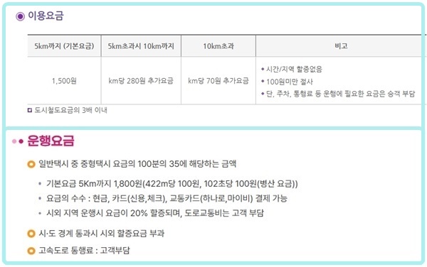 장애인콜택시 광역간 이용방법과 요금안내