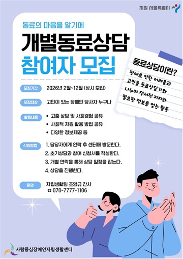 사람중심IL센터, ‘1대1 개별 동료상담’ 참여자 상시 모집