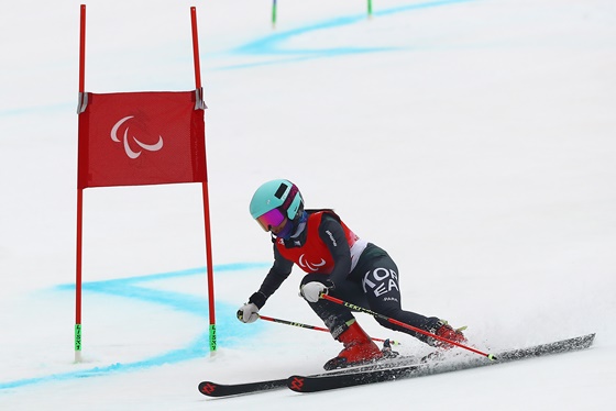 지난 11일 중국 옌칭 국립알파인스키센터에서 개최된 ‘2022 베이징 동계패럴림픽’ 알파인스키 여자 대회전(시각)에 출전한 최사라 선수 경기 모습. ⓒ대한장애인체육회 에이블포토로 보기▲ 지난 11일 중국 옌칭 국립알파인스키센터에서 개최된 ‘2022 베이징 동계패럴림픽’ 알파인스키 여자 대회전(시각)에 출전한 최사라 선수 경기 모습. ⓒ대한장애인체육회