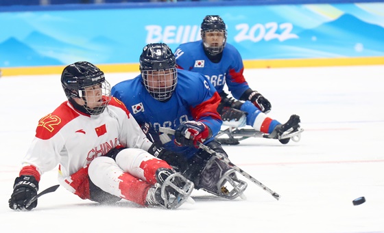 지난 12일 중국 베이징 국립실내경기장에서 진행된 ‘2022년 베이징 동계패럴림픽’ 아이스하키 중국과 대한민국 대표팀의 동메달 결정전 경기 모습. ⓒ대한장애인체육회 에이블포토로 보기▲ 지난 12일 중국 베이징 국립실내경기장에서 진행된 ‘2022년 베이징 동계패럴림픽’ 아이스하키 중국과 대한민국 대표팀의 동메달 결정전 경기 모습. ⓒ대한장애인체육회