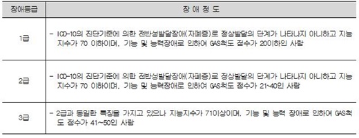 구 자폐성 장애 등록기준. ⓒ국가법령정보센터 에이블포토로 보기▲ 구 자폐성 장애 등록기준. ⓒ국가법령정보센터