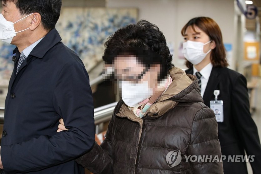 (서울=연합뉴스) 황광모 기자 = 요양급여 부정수급 혐의로 기소된 윤석열 국민의힘 대통령 후보의 장모 최모 씨가 7일 오후 서울 서초구 서초동 서울고등법원에서 열린 2심 공판에 출석하고 있다. 2021.12.7 hkmpooh@yna.co.kr