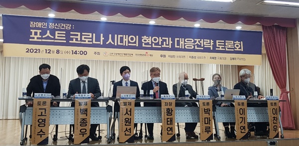 한국장애인단체총연합회(장총련)는 한국생명존중희망재단과 8일 서울 여의도 이룸센터에서 ‘장애인 정신건강 : 포스트 코로나 시대의 현안과 대응전략 토론회’를 개최했다.ⓒ에이블뉴스 에이블포토로 보기▲ 한국장애인단체총연합회(장총련)는 한국생명존중희망재단과 8일 서울 여의도 이룸센터에서 ‘장애인 정신건강 : 포스트 코로나 시대의 현안과 대응전략 토론회’를 개최했다.ⓒ에이블뉴스