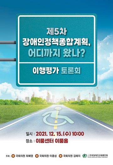 “제5차 장애인정책종합계획, 어디까지 왔나? 이행평가 토론회” 포스터.ⓒ한국장애인단체총연맹 에이블포토로 보기▲ “제5차 장애인정책종합계획, 어디까지 왔나? 이행평가 토론회” 포스터.ⓒ한국장애인단체총연맹