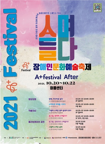 한국장애인문화예술단체총연합회(장예총)가 주최하고 2021장애인문화예술축제조직위원회가 주관하며 문화체육관광부와 한국장애인문화예술원이 후원하는 ‘2021 장애인문화예술축제 A+ Festival After’가 오는 20일부터 22일까지 대학로 이음센터에서 진행된다.