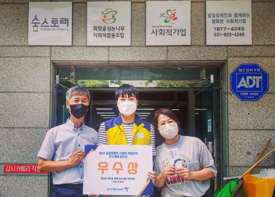 한국장애인고용공단 경기북부지사는 지난 17일 희망을심는나무 사회적협동조합을 방문해 2021년도 중증장애인 근로자 지원인력 우수사례 시상을 했다. ⓒ한국장애인고용공단 경기북부지사