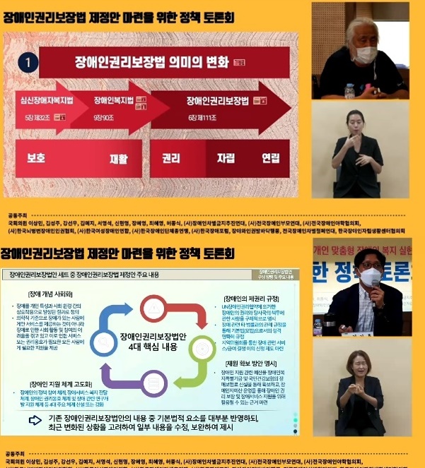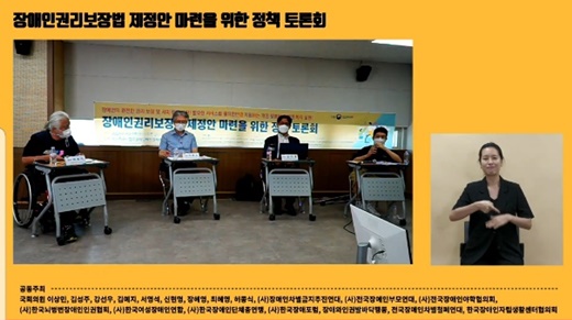 전국장애인차별철폐연대가 18일 온라인을 통해 ‘장애인권리보장법 제정안 마련을 위한 정책토론회’를 개최했다.ⓒ유튜브캡쳐 에이블포토로 보기▲ 전국장애인차별철폐연대가 18일 온라인을 통해 ‘장애인권리보장법 제정안 마련을 위한 정책토론회’를 개최했다.ⓒ유튜브캡쳐