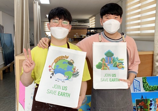다회용 쇼핑백에는 밀알복지재단의 발달장애인 예술단 ‘브릿지온 아르떼(Bridge On Arte)’ 소속 작가들이 환경 보호를 주제로 완성한 일러스트가 담겨 의미를 더했다.