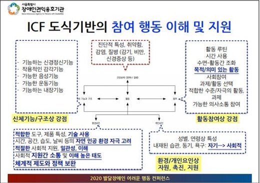서울장애인권익옹호기관에서 작년 12월 온라인으로 주최했던 어려운 행동 컨퍼런스 내용 가운데 ICF기반 행동지원 내용 중 일부. ⓒ서울장애인권익옹호기관 에이블포토로 보기▲ 서울장애인권익옹호기관에서 작년 12월 온라인으로 주최했던 어려운 행동 컨퍼런스 내용 가운데 ICF기반 행동지원 내용 중 일부. ⓒ서울장애인권익옹호기관