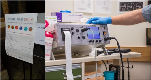 2018년 10월 26일 서울대 의대에서 개최되었던 자폐스펙트럼 심포지움을 설명하는 전단(좌측), 자폐인 등 정신적 장애인의 행동치료를 위해 사용한다는 전기충격요법 기기의 일종(우측). ⓒ이원무, Wikipedia 에이블포토로 보기▲ 2018년 10월 26일 서울대 의대에서 개최되었던 자폐스펙트럼 심포지움을 설명하는 전단(좌측), 자폐인 등 정신적 장애인의 행동치료를 위해 사용한다는 전기충격요법 기기의 일종(우측). ⓒ이원무, Wikipedia