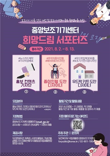 서포터즈는 ▲홍보 기자단 ▲종이인형 도안 디자인 ▲우드락 조립모형(키트) 도안 디자인 총 3가지 부문으로 운영된다.