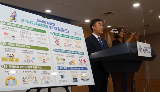 2021년 8월 2일 양성일 보건복지부 1차관이 ‘탈시설 장애인 지역사회 자립지원 로드맵’을 발표하고 있다.ⓒ보건복지부 에이블포토로 보기▲ 2021년 8월 2일 양성일 보건복지부 1차관이 ‘탈시설 장애인 지역사회 자립지원 로드맵’을 발표하고 있다.ⓒ보건복지부