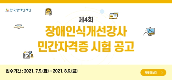 한국장애인재단(이사장 이성규, 이하 재단)이 오는 8월 6일까지 ‘제4회 장애인식개선강사 민간자격증’ 접수를 2주일 연장한다.