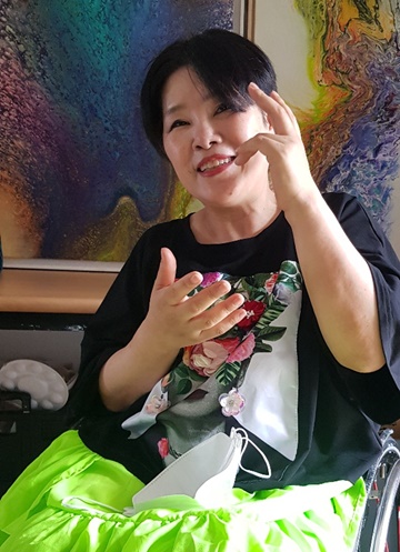 지체장애 홍미경 작가. 그녀에게 예술은 생존이자 숨구멍이었다.ⓒ에이블뉴스 에이블포토로 보기▲ 지체장애 홍미경 작가. 그녀에게 예술은 생존이자 숨구멍이었다.ⓒ에이블뉴스