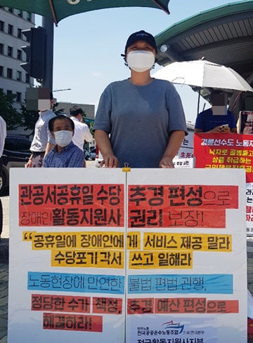 문제는 월급제와 달리 활동지원사와 같은 시급제 노동자는 공휴일 근무 시 수당을 추가로 받아야 하지만, 현실은 그렇지 못하다. 지원사노조가 이를 우려해 보건복지부에 올해 활동지원예산에 관공서 공휴일 수당을 포함해달라고 수차례 요구했지만, 반영되지 못한 것.