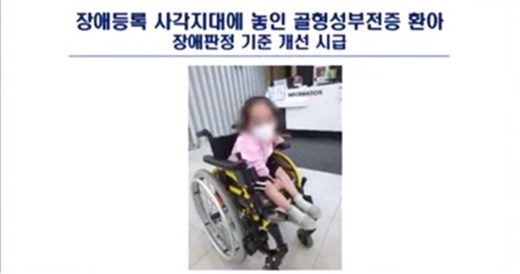 강선우 의원이 공개한 골형성부전증 환아의 사진. 키가 90cm, 몸무게가 13kg도 되지 않는 11살 아이는 스스로 서본 적도, 걸어본 적도 없지만 장애로 인정받지 못한다.ⓒ국회방송캡쳐 에이블포토로 보기▲ 강선우 의원이 공개한 골형성부전증 환아의 사진. 키가 90cm, 몸무게가 13kg도 되지 않는 11살 아이는 스스로 서본 적도, 걸어본 적도 없지만 장애로 인정받지 못한다.ⓒ국회방송캡쳐