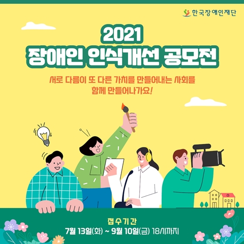 한국장애인재단(이사장 이성규, 이하 재단)이 오는 9월 10일까지 보건복지부, 신한카드, YTN라디오, 문화일보와 함께 ‘2021 장애인 인식개선 공모전’ 작품을 공모한다.