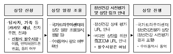 상담이 필요한 경우 청각·언어 장애인 본인 또는 가족 등이 국가트라우마센터 카카오톡 채널‧전자우편(ptsdk@korea.kr), 또는 가까운 수어통역센터를 통해 신청하면 되고, 무료로 이용할 수 있다.