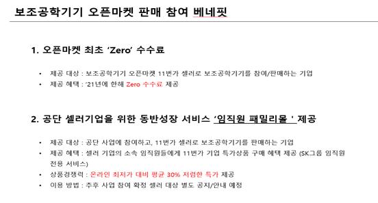 그런데 최근 공단은 보조공학기기를 납품하는 76개 업체들에게 SKT가 모기업인 SK플래닛에서 운영하는 11번가 쇼핑몰에 참여하도록 독려하고 있다. 공단이 왜 쇼핑몰을 이용하도록 독려하는 것일까?