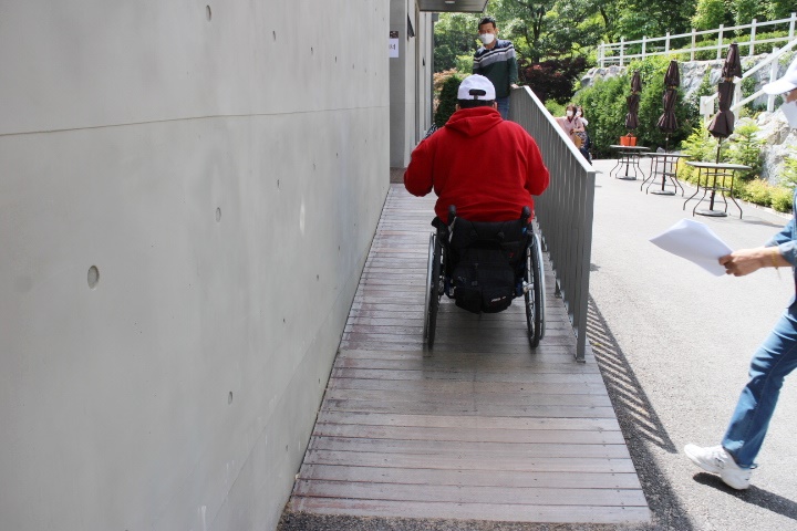 휠체어를 사용하는 장애인은 경사로를 통해 용인곤충테마파크 곤충박물관에 들어갈 수 있다. ⓒ박종태 에이블포토로 보기▲ 휠체어를 사용하는 장애인은 경사로를 통해 용인곤충테마파크 곤충박물관에 들어갈 수 있다. ⓒ박종태