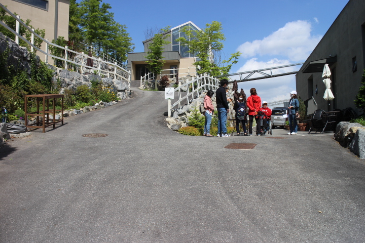 지난 25일 휠체어를 사용하는 수지장애인자립생활센터 성경삼·서종현·박태식 회원, 활동가 3명과 함께 용인곤충테마파크의 장애인 편의시설을 점검한 결과 건물들이 가파른 언덕에 있어 휠체어를 사용하는 장애인의 접근하기에는 어려움이 있었다.