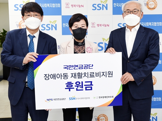 국민연금공단(이사장 김용진)이 20일 한국사회복지협의회에 장애아동 자립 생활을 지원하기 위한 재활치료비 5,040만 원을 전달했다.