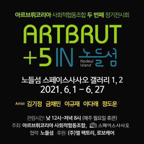 아르브뤼코리아 사회적협동조합(이하 아르브뤼코리아)이 오는 6월 1일부터 27일까지 노들섬 스페이스사사오 갤러리에서 2021년도 조합 정기전시회를 연다.