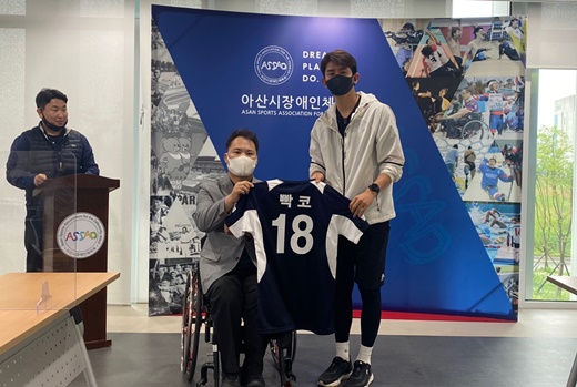 아산시장애인체육회가 18일 장애인체육 홍보 활성화를 위해 유명 유튜버 ‘빡코’를 명예홍보대사로 위촉했다.