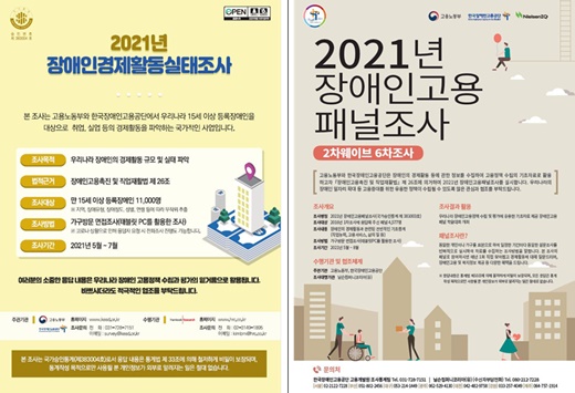 한국장애인고용공단 고용개발원은 장애인 고용정책 수립에 필요한 노동시장 기초 통계자료를 확보하고자 ‘장애인경제활동실태조사’, ‘장애인고용패널조사’ 2종의 통계조사를 5월부터 실시한다고 17일 밝혔다.