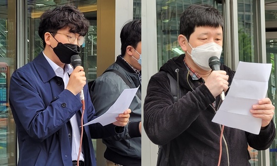 4일 오전 11시 인권위 앞에서 개최된 ‘장애인복지법 제15조로 인한 정신장애인 복지서비스 차별 진정’ 기자회견에서 발언하는 재단법인 동천 정제형 변호사(왼쪽)와 한국정신장애인자립생활센터 강욱성 활동가(오른쪽). ⓒ에이블뉴스 에이블포토로 보기▲ 4일 오전 11시 인권위 앞에서 개최된 ‘장애인복지법 제15조로 인한 정신장애인 복지서비스 차별 진정’ 기자회견에서 발언하는 재단법인 동천 정제형 변호사(왼쪽)와 한국정신장애인자립생활센터 강욱성 활동가(오른쪽). ⓒ에이블뉴스