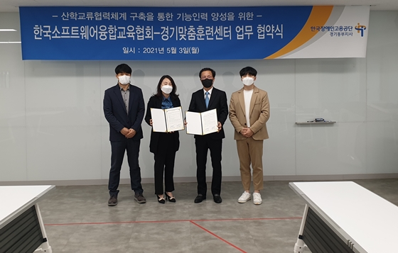 한국장애인고용공단 경기맞춤훈련센터가 3일 사단법인 한국소프트웨어융합교육협회와 장애인 기능 인력 양성을 위한 업무 협약을 체결했다.ⓒ한국장애인고용공단 경기맞춤훈련센터