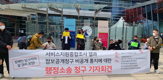 이에 “장애인 알 권리를 심각하게 침해하는 것”이라면서 29일 전국장애인차별철폐연대(전장연) 등 4개단체와 서울행정법원에 비공개 통지 처분 취소를 요구하는 행정소송을 제기했다.