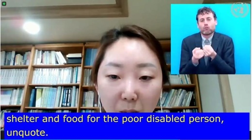 염전노예 등의 강제노동 현실에 대해 발표하는 민주사회를 위한 변호사 모임 류다솔 변호사와 수화통역사. ⓒUNWebtv 캡처 에이블포토로 보기▲ 염전노예 등의 강제노동 현실에 대해 발표하는 민주사회를 위한 변호사 모임 류다솔 변호사와 수화통역사. ⓒUNWebtv 캡처
