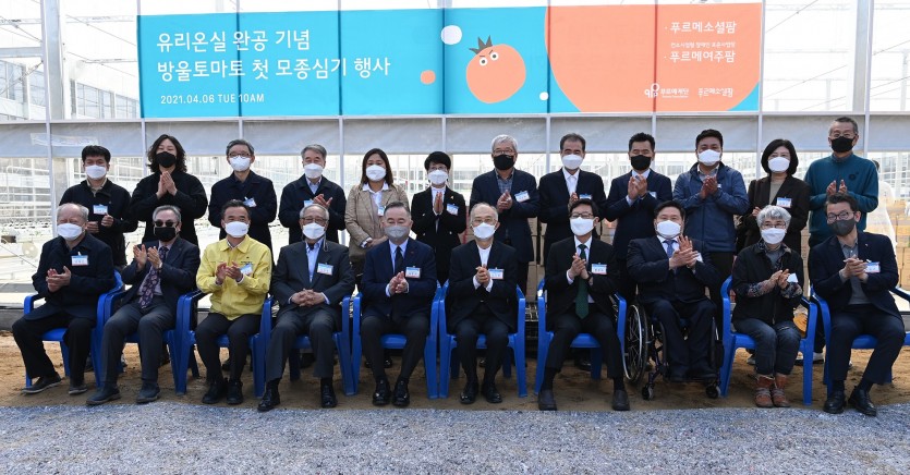 한국장애인고용공단이 6일 여주시, 한국지역난방공사, 푸르메재단, 에스케이하이닉스와 ‘제1호 컨소시엄형 장애인 표준사업장’ 푸르메여주팜㈜의 온실 개장 및 모종 행사를 개최했다. ⓒ한국장애인고용공단
