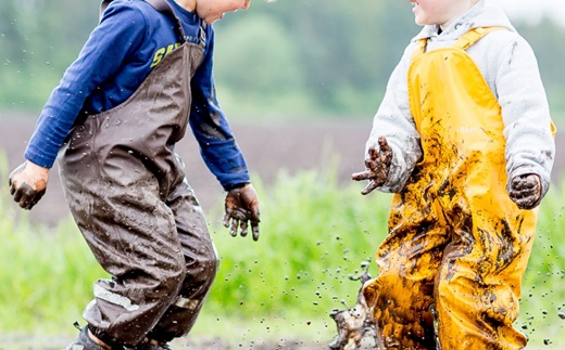 독일 아이들이 즐겨 입는 옷 중에 방수바지(Matschhose, 직역하면 ‘진흙바지’가 된다)가 있다. 멜빵바지 형태에 방수처리가 된 옷이다. 소재의 종류와 두께에 따라 방수바지의 종류는 매우 다양한데, 겨울용은 두꺼운 방한소재로 안감처리가 되어 있어 차가운 바닥에 오랜 시간 앉아 있어도 문제없을 정도다.